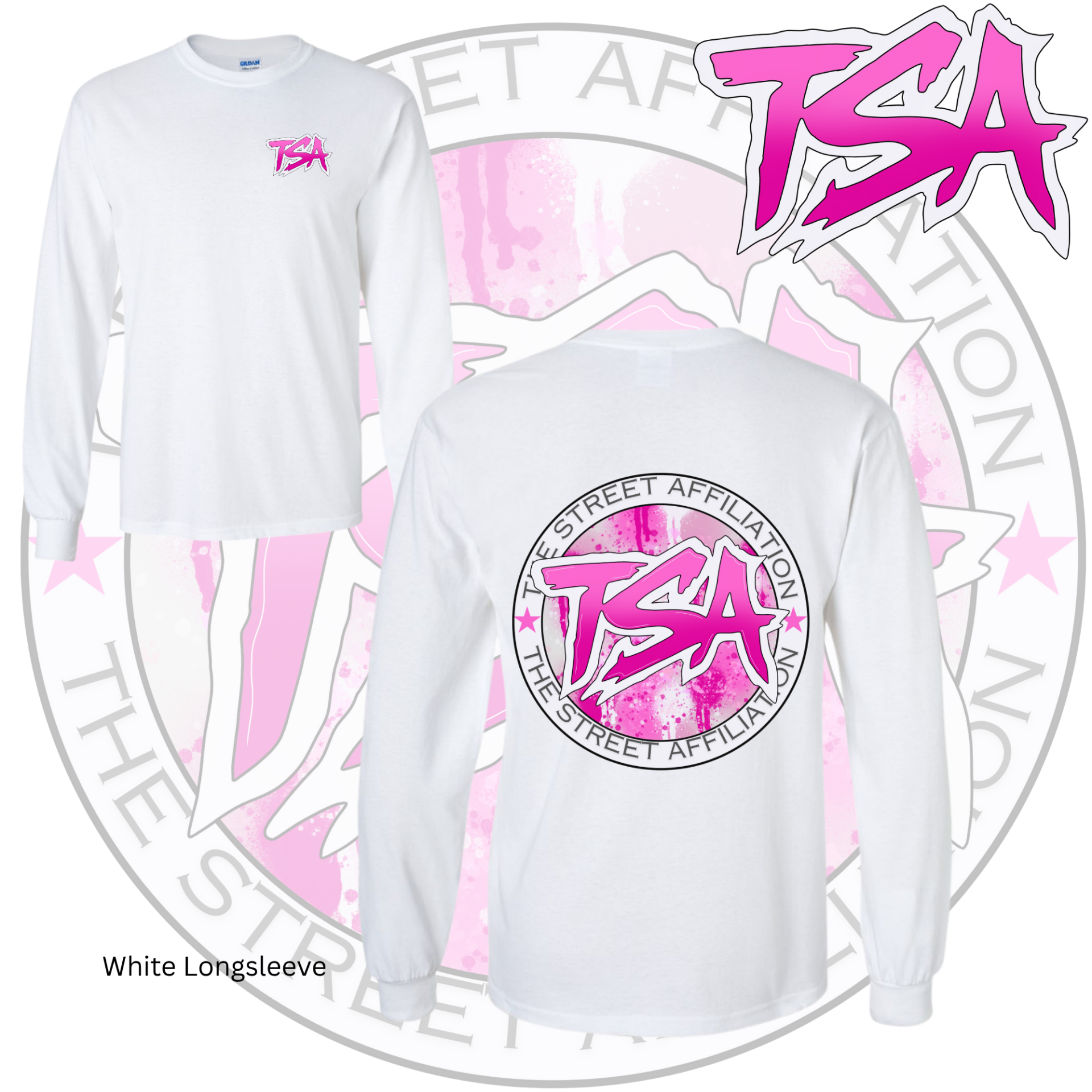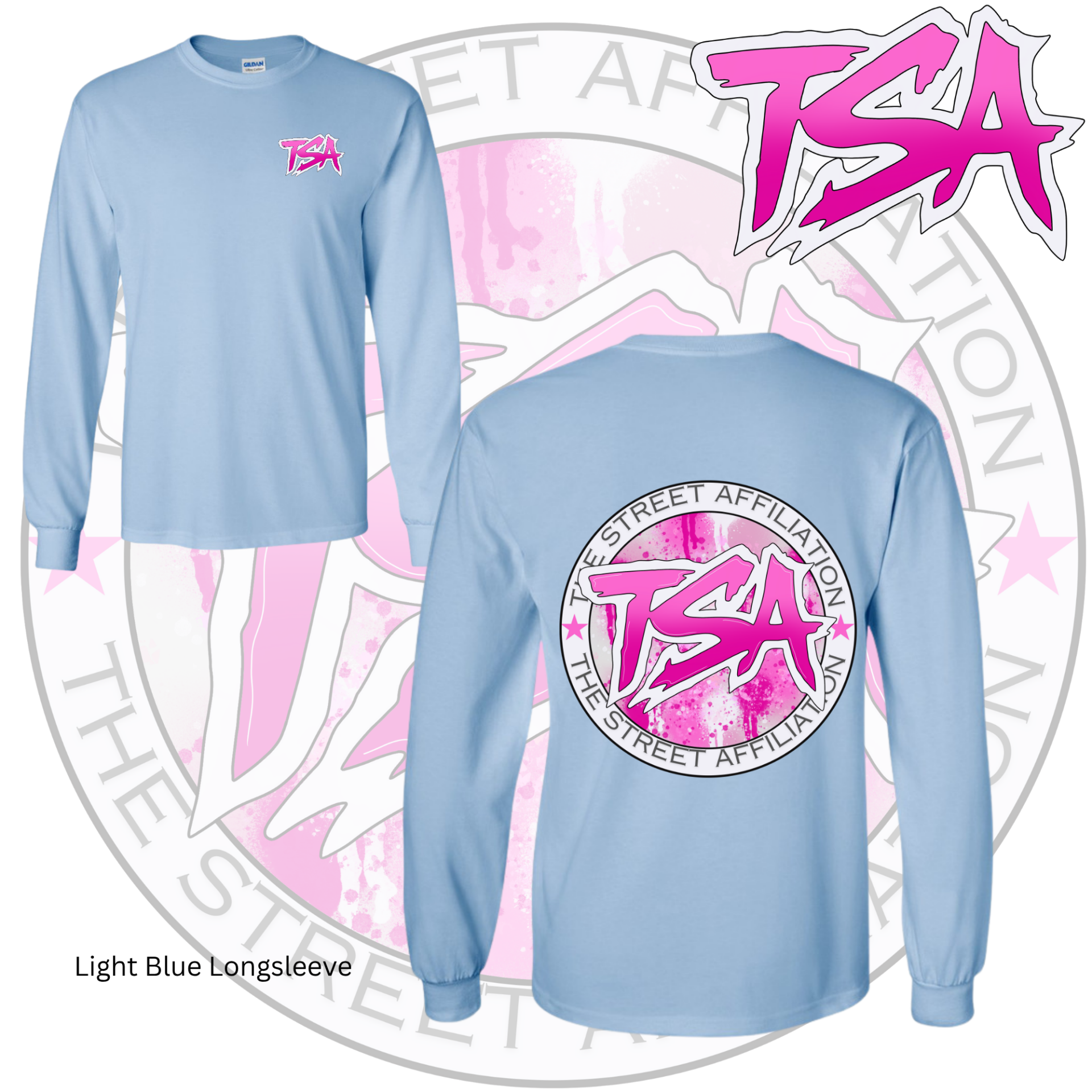 This bold clothing design features a circular emblem with "TSA" at the center, accented by splatter paint details and released in multiple vibrant colorways. The repeated logo serves as a signature mark, unifying the collection across a range of streetwear staples.