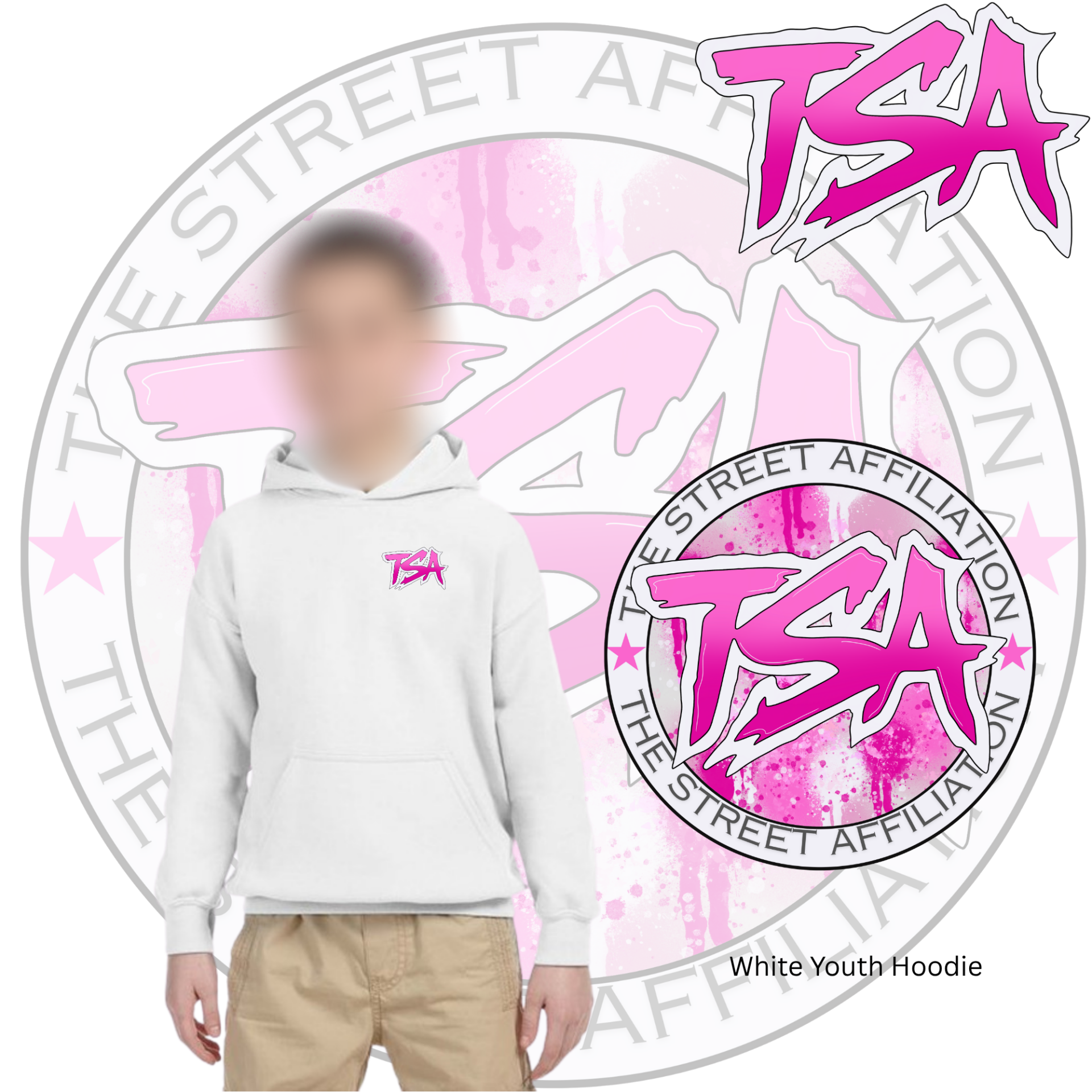 This bold clothing design features a circular emblem with "TSA" at the center, accented by splatter paint details and released in multiple vibrant colorways. The repeated logo serves as a signature mark, unifying the collection across a range of streetwear staples.