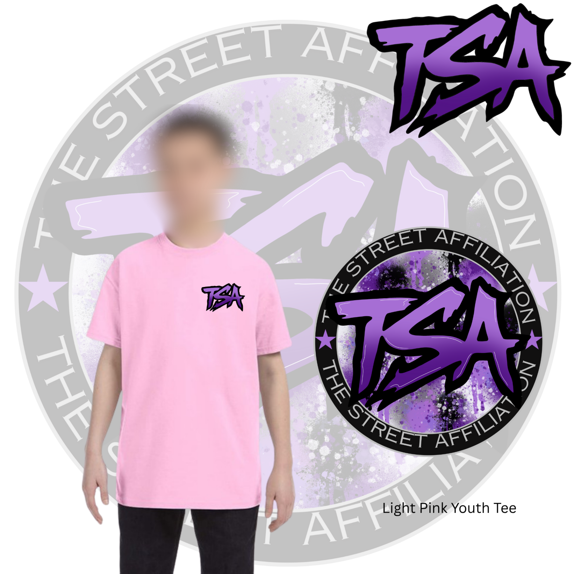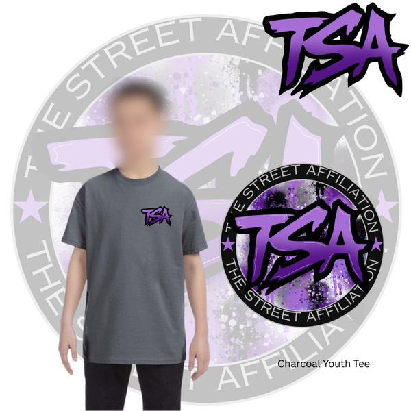 This bold clothing design features a circular emblem with "TSA" at the center, accented by splatter paint details and released in multiple vibrant colorways. The repeated logo serves as a signature mark, unifying the collection across a range of streetwear staples.