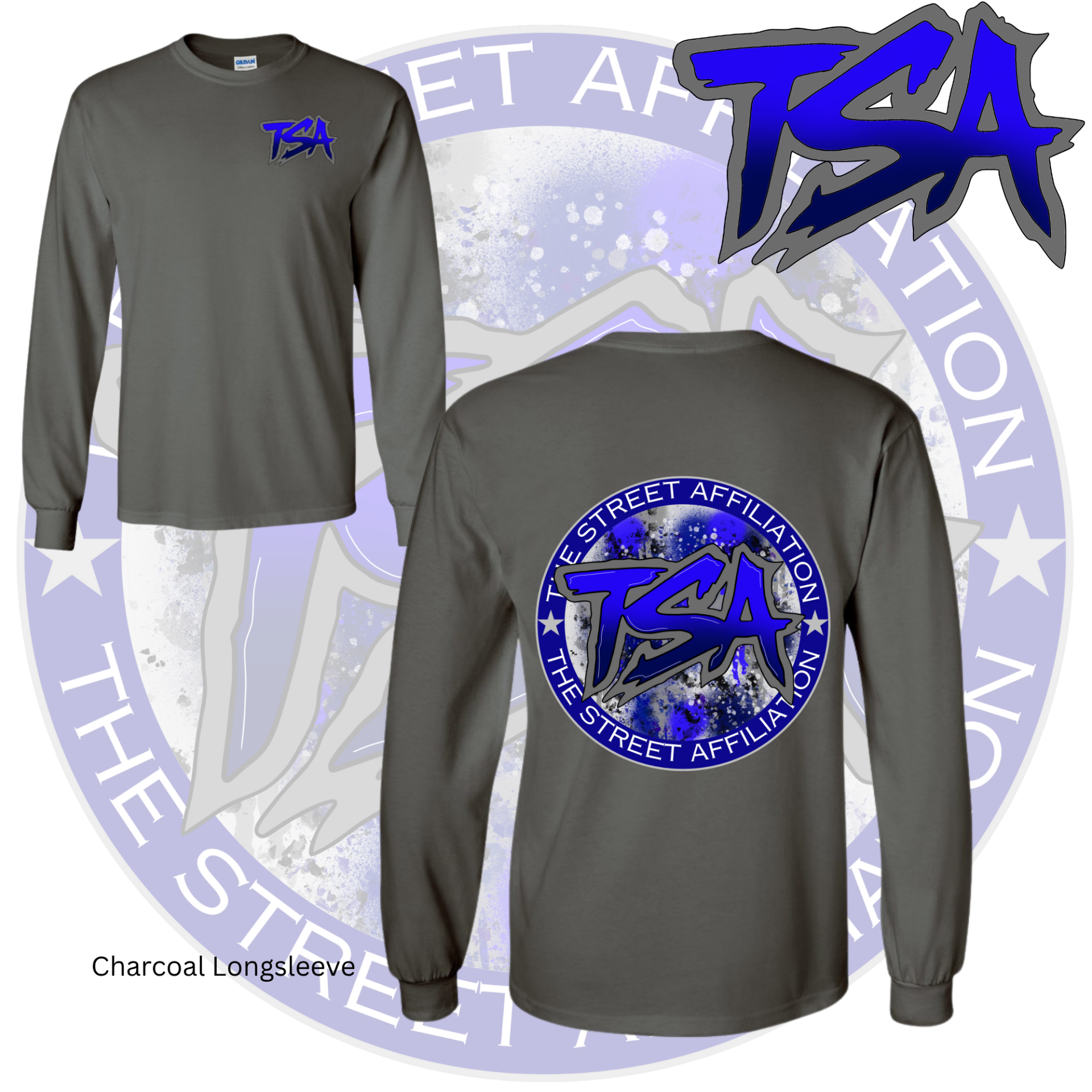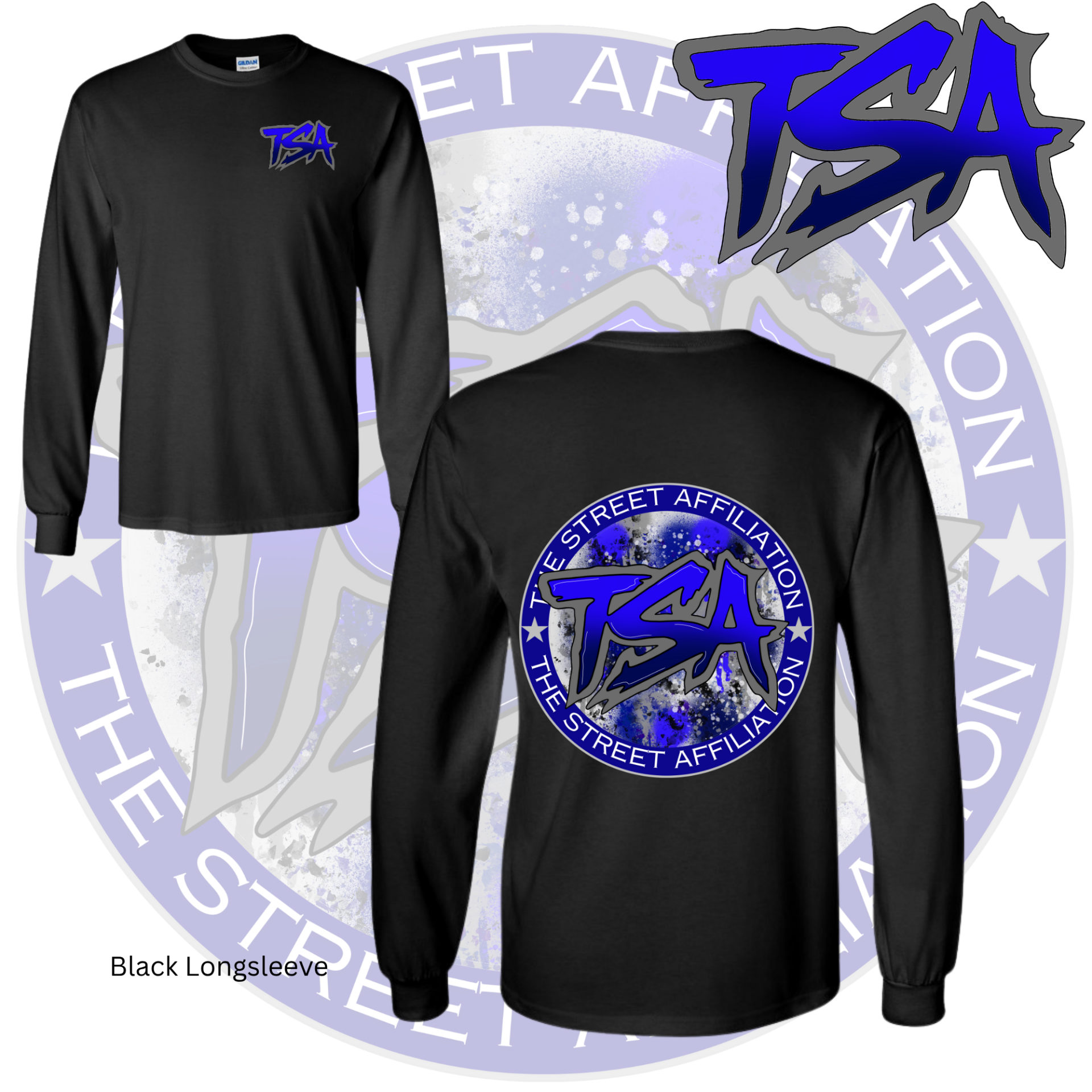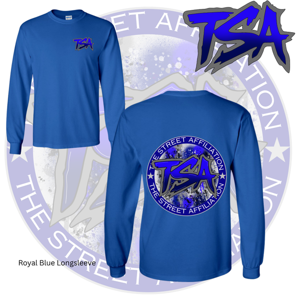This bold clothing design features a circular emblem with "TSA" at the center, accented by splatter paint details and released in multiple vibrant colorways. The repeated logo serves as a signature mark, unifying the collection across a range of streetwear staples.
