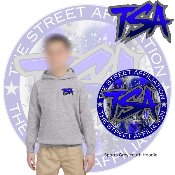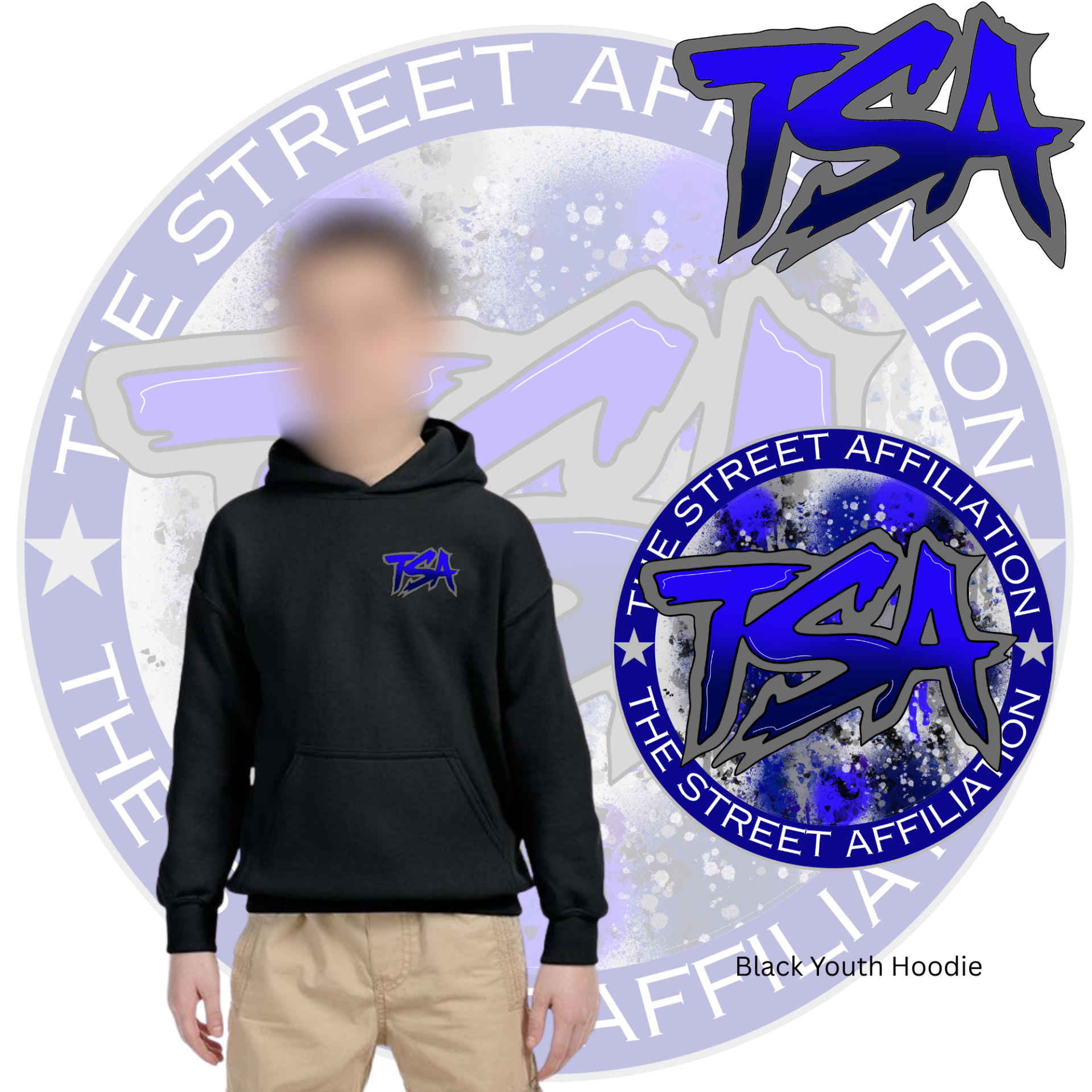 This bold clothing design features a circular emblem with "TSA" at the center, accented by splatter paint details and released in multiple vibrant colorways. The repeated logo serves as a signature mark, unifying the collection across a range of streetwear staples.