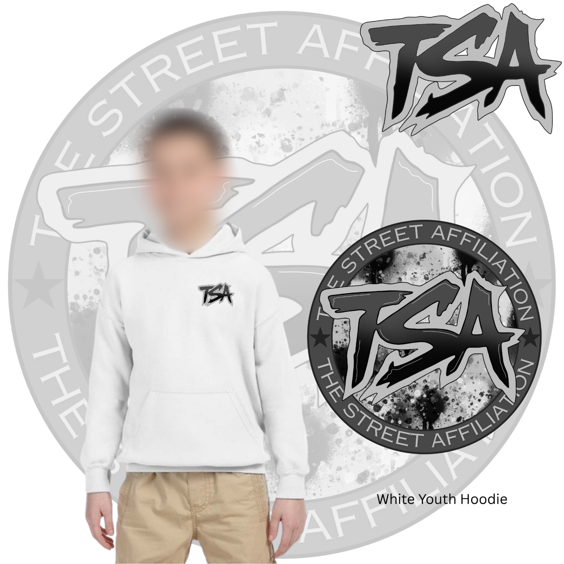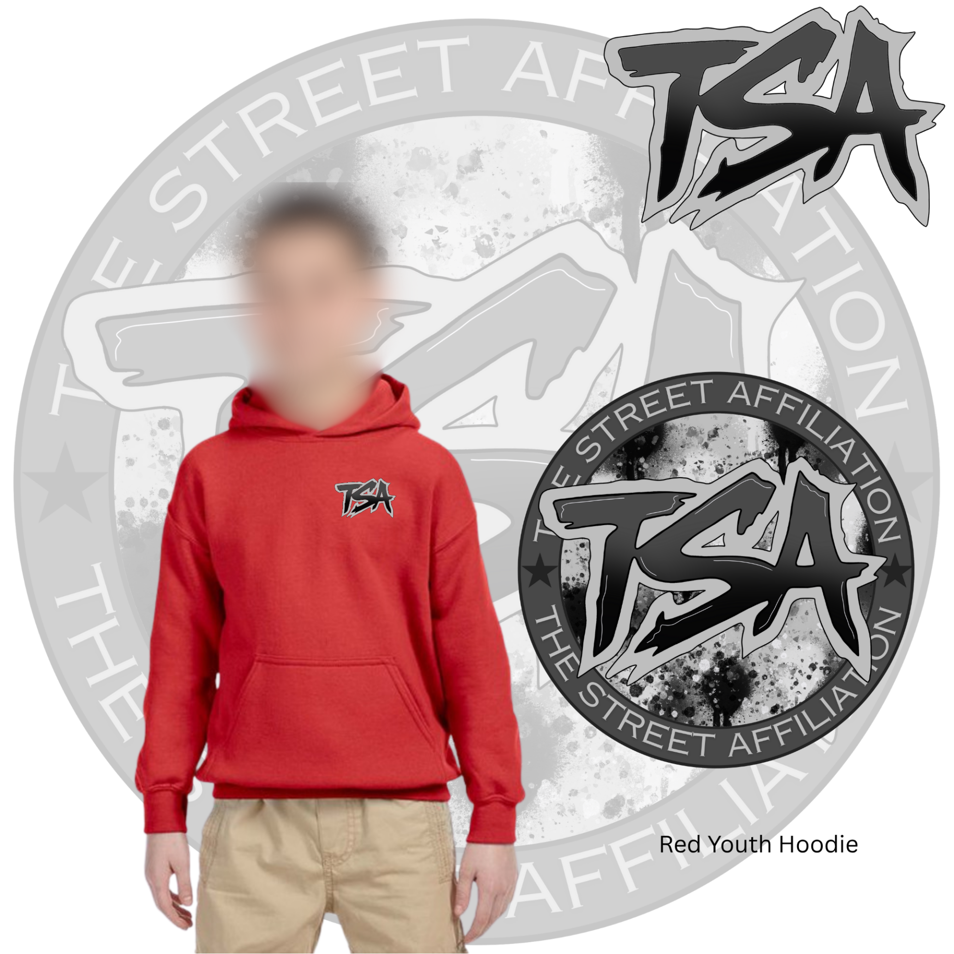 This bold clothing design features a circular emblem with "TSA" at the center, accented by splatter paint details and released in multiple vibrant colorways. The repeated logo serves as a signature mark, unifying the collection across a range of streetwear staples.