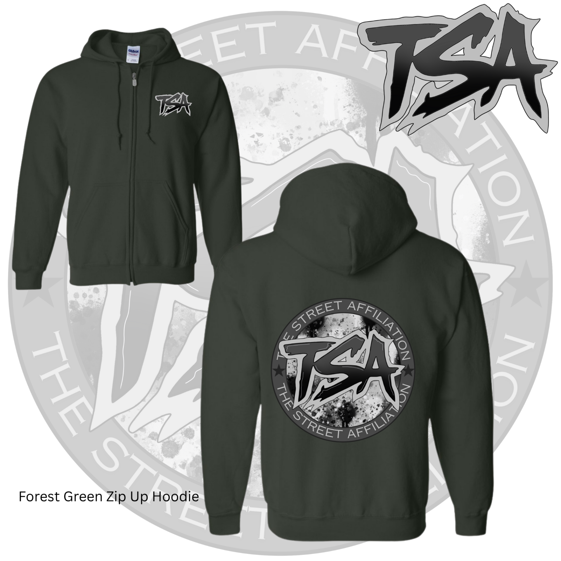 This bold clothing design features a circular emblem with "TSA" at the center, accented by splatter paint details and released in multiple vibrant colorways. The repeated logo serves as a signature mark, unifying the collection across a range of streetwear staples.