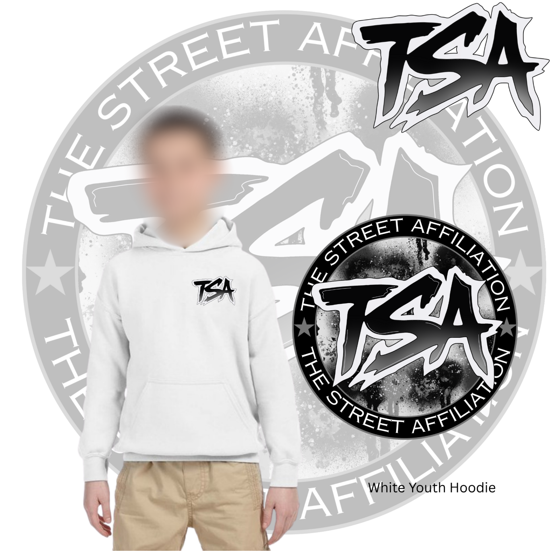 This bold clothing design features a circular emblem with "TSA" at the center, accented by splatter paint details and released in multiple vibrant colorways. The repeated logo serves as a signature mark, unifying the collection across a range of streetwear staples.